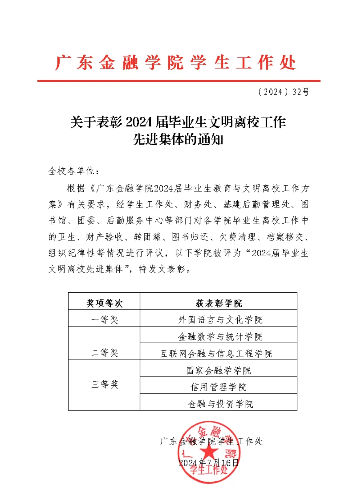 近日,从员工工作处下发的《关于表彰2024届毕业生文明离校工作先进集体的通知》获悉,db真人体育官网荣获“2024届毕业生文明离校工作先进集体三等奖”(全校排名第四)。这一殊荣不仅是对公司毕业生工作的高度认可,更是对公司坚持以员工为中心,强化管理与服务理念的生动诠释。