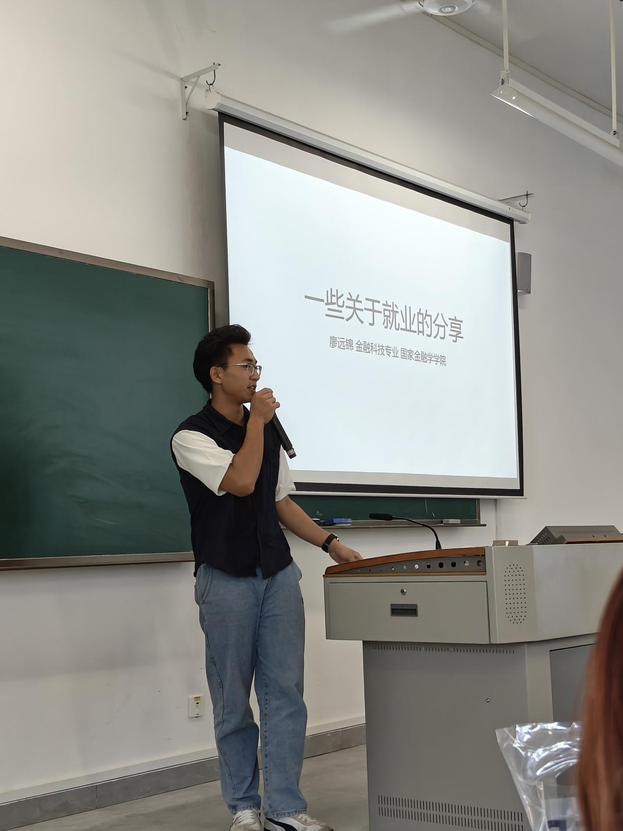 入职平安银行的廖远锦同学分享了求职过程中的经验和心得,强调了职业规划的重要性,并鼓励同学们要不断提升自己的专业技能和综合素质,为未来的职业生涯打下坚实的基础。