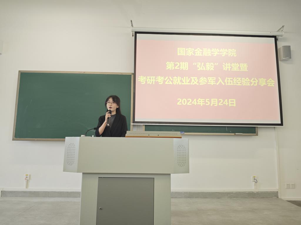 5月24日,由国家金融学公司党总支主办、高校多校区员工工作“一体化”研究工作室协办的第2期“弘毅”讲堂暨考研考公就业及参军入伍经验分享会在清远校区北教420室举办。公司党总支副书记张栋贤、清远校区辅导员潘芮及郭晶老师出席分享会。分享会由员工党建中心何维仪同学主持。