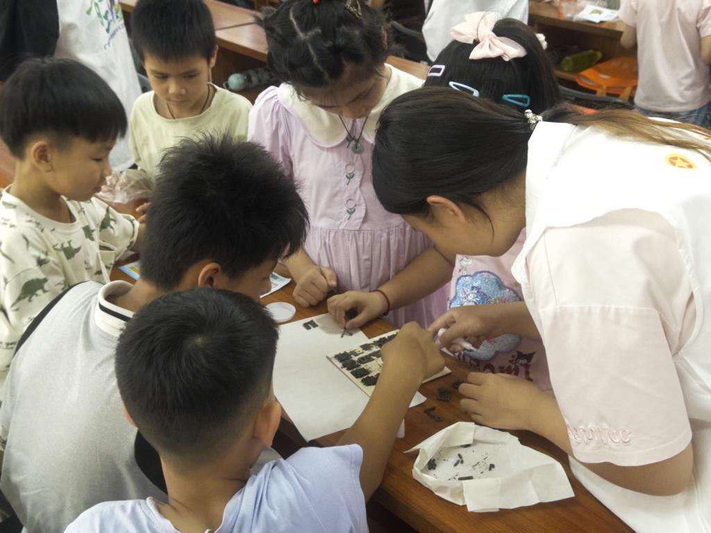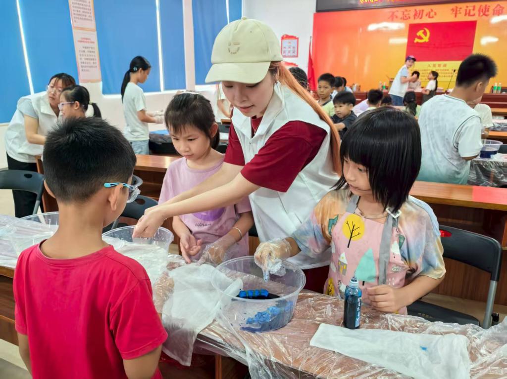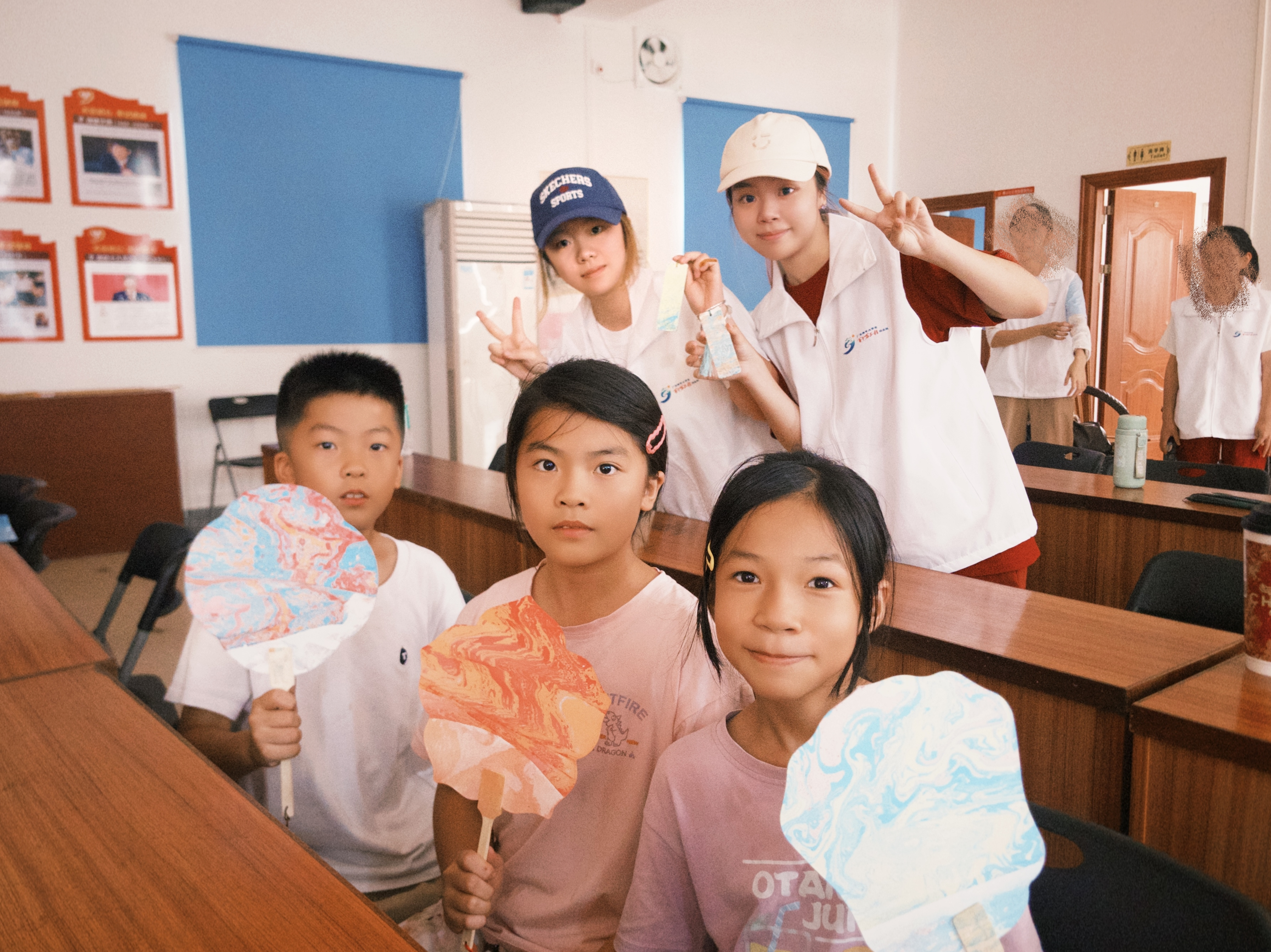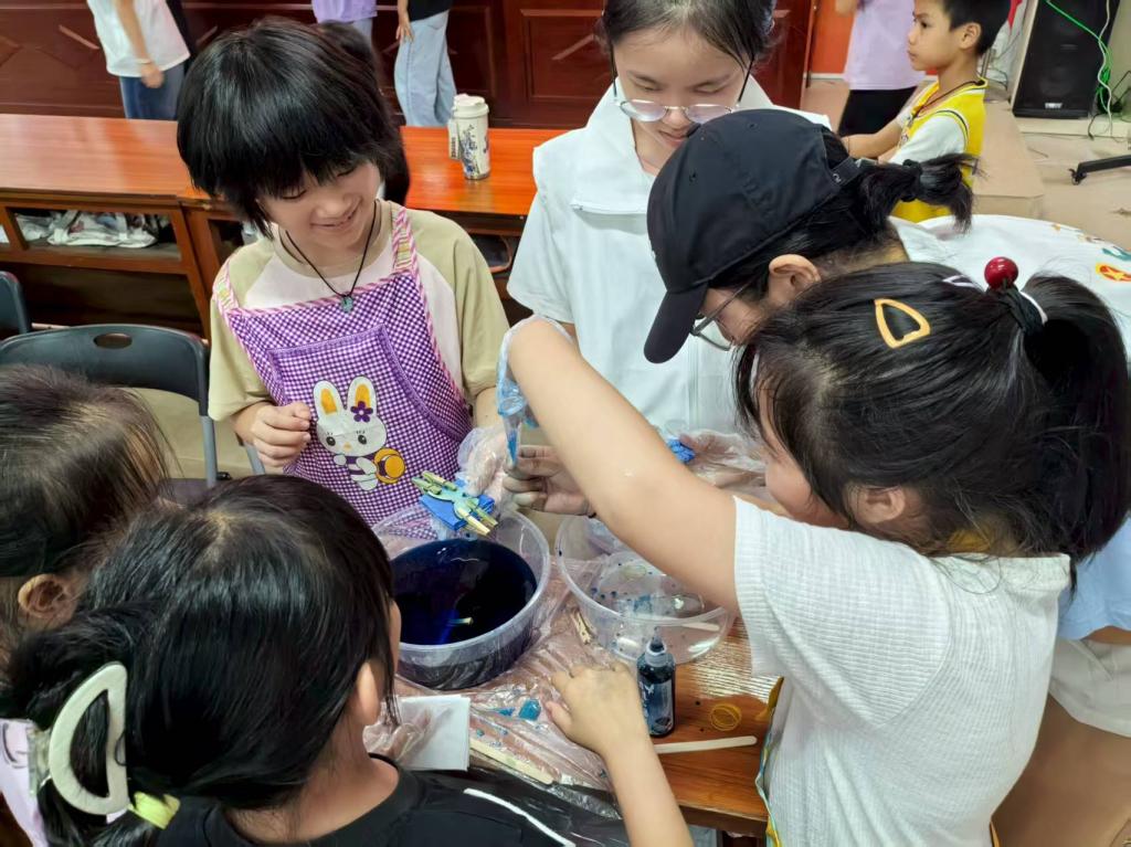 在安全技能提升方面,“网络安全小课堂”帮助孩子掌握了防诈骗技巧,而地震防范教学则紧密结合本地特点,通过儿歌和实战演练,让孩子们学会了有效应对地震的方法。在传统技艺传承上,扎染手帕创作让孩子理解非遗工艺智慧,活字印刷体验让孩子感受“毕昇活字”的神奇;在漆扇非遗体验活动中,孩子们创作出洋溢着童真趣味的作品,并在展示环节大方分享各自独特的设计理念。活动中,孩子们在小组合作中学会沟通配合,表达能力明显提升。公司14名实践队成员全程组织指导,实现“教学相长”。