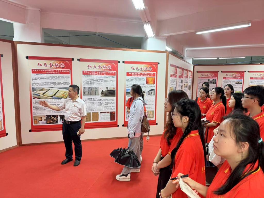最后,全体师生参观了“红色金融路”专题展览。通过参观沉浸式学习红色金融史,一张张历经沧桑巨变的红色货币,一处处红色革命遗址,一个个感人的红色金融故事,使师生们看到了红色金融事业如何从无到有、从小到大,经历了无数艰苦奋斗才取得今天的辉煌成就,感受到红色金融人对党忠诚、不畏牺牲、英勇奋斗、廉洁自律的精神,进一步增强了师生对红色金融发展历史的了解,并从红色金融史中汲取前进的智慧和奋进的力量,坚定理想信念、筑牢信仰之基,以金融报国为己任,自觉把个人的理想追求融入党和国家的伟大事业之中,用实际行动为中华民族伟大复兴贡献青春智慧和力量。