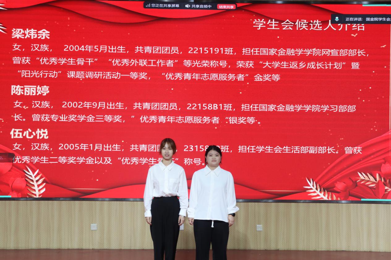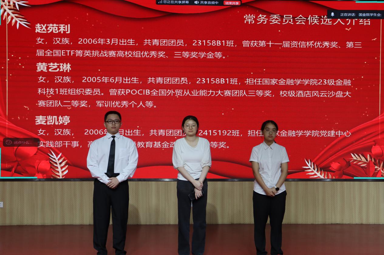 经过现场与线上民主投票,大会最终选举产生了db真人体育官网第二届员工代表大会常务委员会和员工会主席团成员。陈天棋、萧可涵、赵苑利、黄艺琳、郭振铭,共5名同学当选为员工代表大会委员会委员,梁炜余、陈丽婷同学当选为员工会主席。