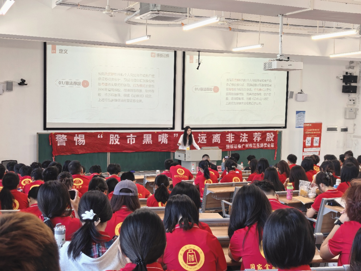 为增强老员工对证券市场的认知,提升其防范非法证券期货活动及反诈骗的意识,10月28日,由校团委、db真人体育官网、国新证券联合主办,高校多校区员工工作“一体化”研究工作室、新时代“大思政”育人工作室协办的校园文化巡礼之第13期“弘毅”讲堂暨“国新证券投资者教育进百校”活动在清远校区顺利举办。活动特邀国新证券广州珠江东路证券营业部理财经理乔榛担任主讲嘉宾,国新证券广东分公司业务推动负责人石国强、机构业务经理张荥、广州珠江东路证券营业部资深投资顾问刘承宇及清远校区李影媚老师等出席活动,db真人体育官网2025级200多名员工参加了活动。活动由邓伊伶同学主持。