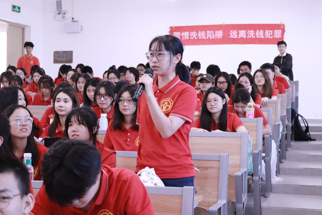 互动环节中,乔经理针对老员工投资理财的常见误区、机构业务合规要点及个人投资者权益保护等问题,进行了专业且深入的解答与交流,现场气氛热烈。乔榛在总结中强调:“投资者是资本市场的基石,老员工是未来市场的重要力量。只有提升自身的法律意识和风险识别能力,才能在复杂的金融环境中保持清醒、远离诈骗。”她呼吁同学们积极学习金融知识,提升防诈能力,并将所学知识分享给身边人,携手共建安全、理性的校园金融环境。