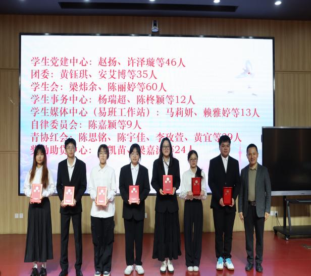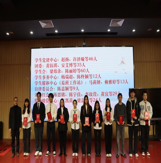 丘志君书记、张栋贤副书记和周君仪老师为退任的员工干部们颁发了满载荣誉的聘书。这一本本红色聘书,不仅是对他们过去一年辛勤付出与卓越贡献的庄严认证,更是公司对这份责任与担当的最高致敬。在温馨而庄重的气氛中,老师们与每一位退任干部亲切握手、合影留念,现场掌声经久不息,既是感谢,也是祝福。随后,主持人公布了新一届员工干部的名单,期待这些鲜活的力量让公司的建设更上一层楼。