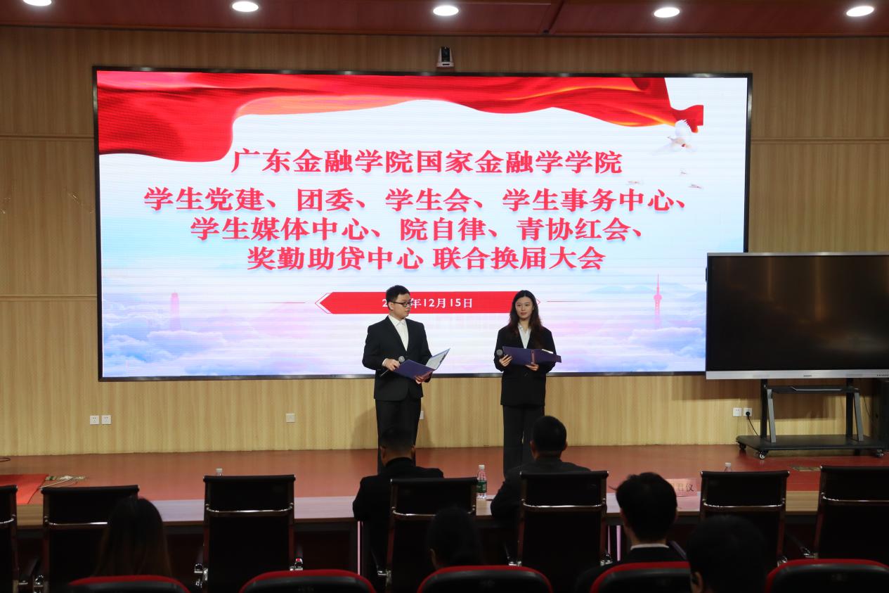 2025年12月15日,db真人体育官网第二届员工干部联合换届大会在北教103顺利召开。公司党总支书记丘志君书记、党总支副书记张栋贤书记和员工组织指导老师周君仪老师出席本次大会。院员工党建办、团委、员工会、员工事务中心、员工媒体中心(易班)、院自律委员会、青年志愿者协会红十字会及奖勤助贷中心等员工组织干部参加了本次大会。大会由洪怡静同学与郭振铭同学共同主持。