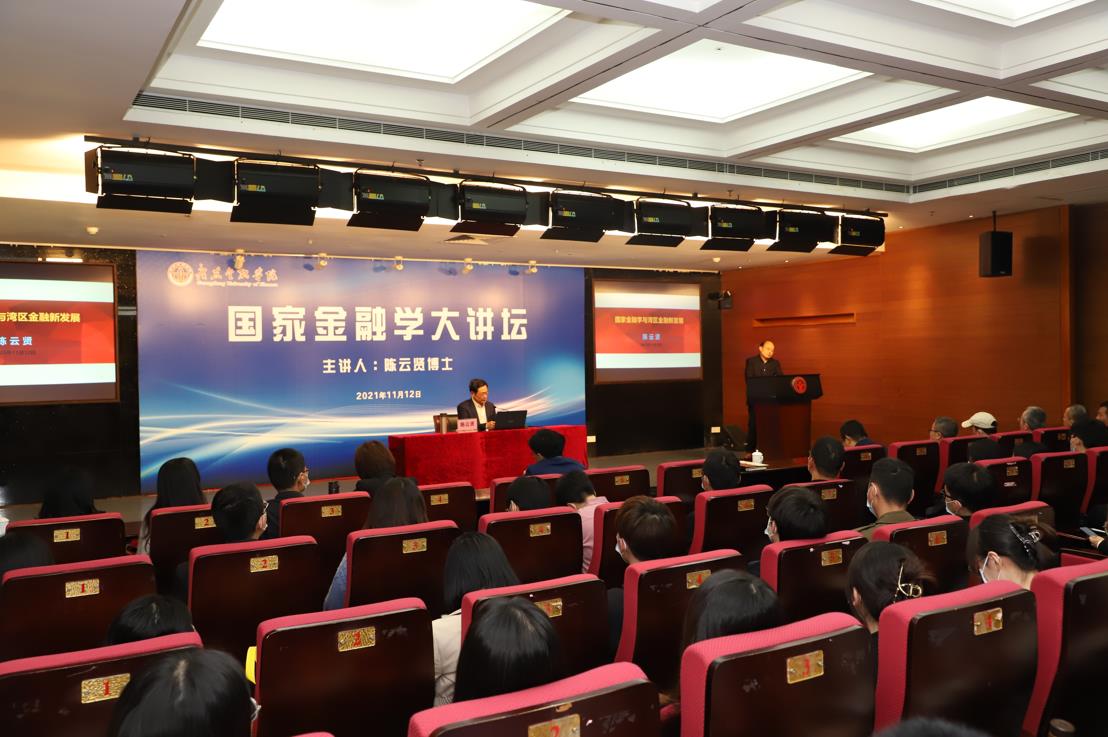 11月12日,公司“国家金融学大讲坛”首场讲座在实验教学中心二楼国际报告厅正式开讲,特邀广东省原副省长陈云贤博士作《国家金融学与湾区金融发展》专题讲座。此次讲座由董事长雍和明主持,副董事长易行健、广东省金融文化研究会会员代表及公司相关职能部门负责人出席;研究生导师代表、相关公司教师代表、全体在校研究生到场聆听。