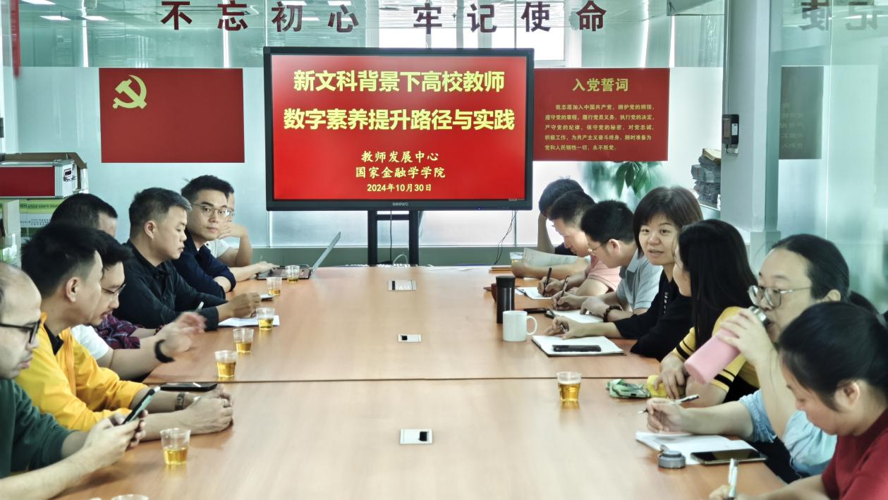 为加快推进教育数字化,提升一线教师教学、科研和论文指导能力,10月30日,db真人体育官网与教师发展中心联合举办“新文科背景下高校教师数字素养提升路径与实践”主题教研活动,邀请金融科技系主任黄锐副研究员、财政系主任谭江涛教授作专题分享。教师发展中心副主任肖荣勋、金英老师及国家金融学公司党政班子、教师代表等参加了活动。活动由db真人体育官网副经理(主持工作)张玲教授主持。