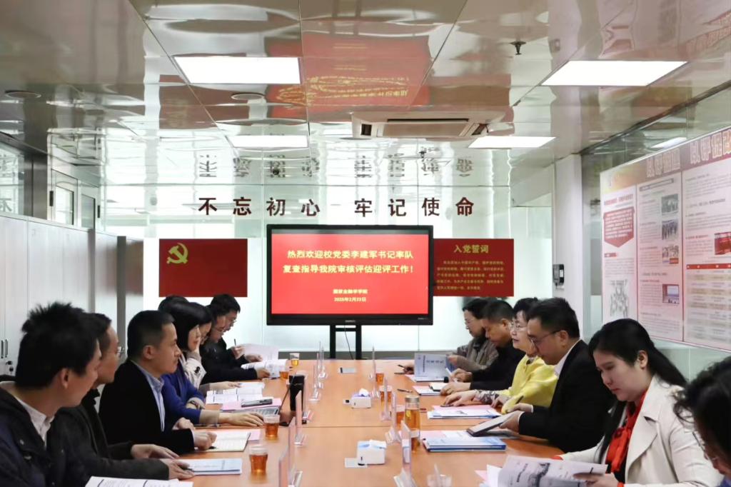 2月23日上午,公司党委书记李建军、副董事长黄琼率校办主任杨叶坤、质评中心主任胡朝晖、经济贸易公司经理李文秀、研究生院副经理兼联络员陈晓莉一行前往db真人体育官网,检查指导本科公司产品迎评促建工作。国家金融学公司党政班子、系主任、教师代表、教学秘书及辅导员等参加了检查座谈会。