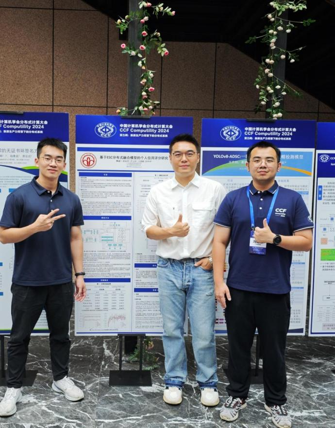 同时,在CCF分布式计算大会(CCF Computility 2024)上,韩迪教授携2023届金融专业硕士冯建麟、2022级金融科技本科生郭梓坤等团队成员共同撰写的论文《基于ESC分布式融合模型的个人信用评分研究》被成功收录并与同行参会交流。