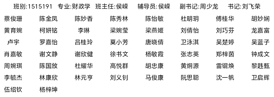 db真人体育官网2015级财政学专业员工名录