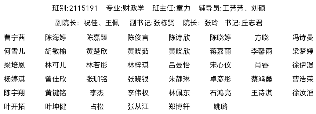 db真人体育官网2021级财政学专业员工名录